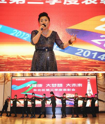 除此之外大会还对东北大区绩优经销商钟义芳、张伟明、王沭蘅、张丽娟、王玉、陈泓霖、魏颖华、唐淑玲、王馨泽、张广顺进行了表彰和激励,感谢他们一直以来为东北大区的大健康事业做出的辛勤努力和卓越贡献!期间,由他们带来的真挚分享带给所有伙伴一次又一次感动。他们凭借自己睿智的眼光、坚定的信念、执着的精神,在大健康事业平台上,建立起一支有理想、有追求、有能力、有战斗力的大健康营销队伍。他们怀揣“创造健康 人人共享”、“幸福一家 健康全球”的梦想,励精图治、发奋图强。他们不断挑战自我,创造了一次次奇迹,实现了一次次跨越,征服了一座座山峰,他们被称为“大健康事业的榜样”!