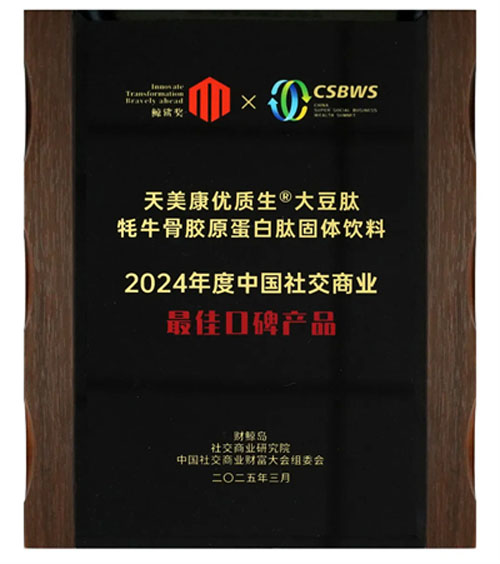 同时,公司旗下产品天美康优质生®大豆肽牦牛骨胶原蛋白肽固体饮料也凭借其良好的品质和众多消费者的高度认可,斩获 “2024 年度中国社交商业最佳口碑产品”荣誉。这款产品凝聚了双迪的科研智慧,从原料的精心挑选到生产工艺的严格把控,每一个环节都致力于为消费者提供优质的健康产品,也正因如此,才赢得了市场和消费者的口碑。