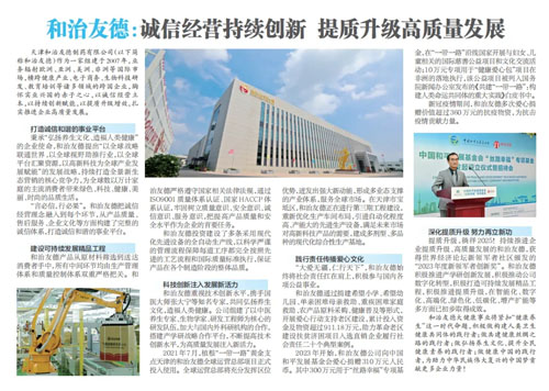 “言必信,行必果”。和治友德把诚信经营理念融入到每个环节,从产品质量、售后服务、企业文化等方面构建了完整的诚信体系,打造诚信和谐的事业平台。