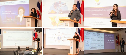 广东省直销企业协会秘书长王利明先生、泰国中小企业委员会副主席Suchada女士、泰国消费者保护委员会高级督导Nutchapat先生、泰国食品药品监督局高级技术督导Noppong先生、泰国食品药品监督局高级官员Waliga女士、泰国工业标准院TISI标准制定高级官员、技术督导Penpicha女士、泰国资深直销专家Sakda先生等嘉宾出席本次交流活动。