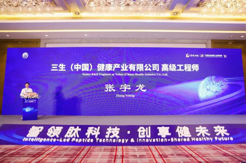 会议现场,三生(中国)高级研发工程师张宇龙博士分享了《食源性肽产业化创新应用与发展趋势剖析》主题报告。他指出,AI辅助设计与合成生物学技术的应用,不仅有效降低了肽产品的苦味、腥味等感官短板,更大幅压缩了研发与生产成本,让肽类成分得以广泛应用于冰激凌、软糖等大众喜爱的产品形态中。针对行业痛点,他表示,食源肽行业需在夯实构效关系、统一检测标准、优化科普表达等方面做出努力,为中国功能食品产业提供 “蛋白 4.0” 解决方案,推动肽营养从专业领域走向大众生活。