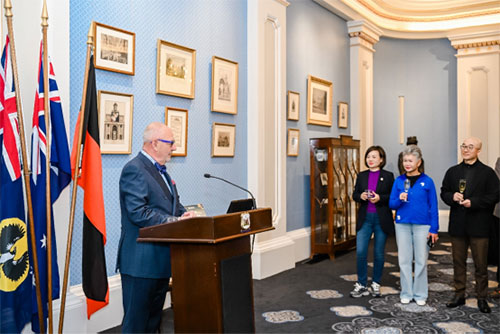 (菲利普·马顿和周鲁浩在阿德莱德市政厅互换礼物)
