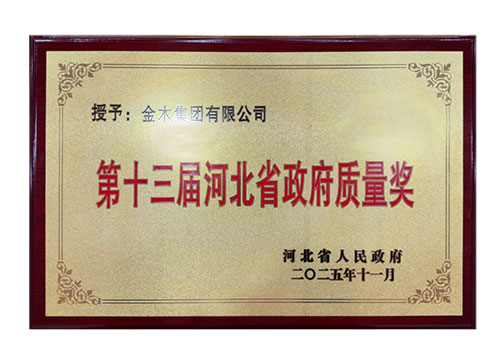 (金木集团“第十三届河北省政府质量奖”荣誉证书)