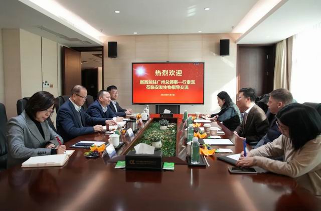 1月7日下午,新西兰驻广州总领事馆总领事张典率商务领事Pete Frost(冯沛林)、商务官员陈莉嘉、政策顾问曾淑玲专程到访安发(福建)生物科技有限公司。安发高层领导高益槐教授、高炜总裁、蓝海云副总裁热情接待,双方就深化中新健康产业合作、推动科技创新及经贸发展等议题展开深入交流。