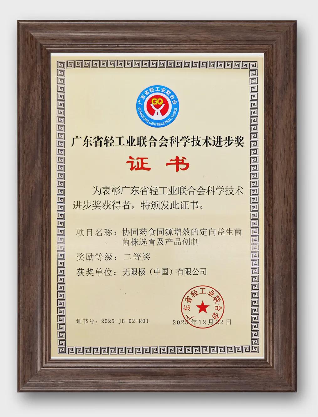 前不久,无限极“协同药食同源增效的定向益生菌菌株选育及产品创制”项目成果被广东省广东省轻工业联合会评定为“国际先进”水平,并荣获2025年度广东省轻工业联合会科学技术进步奖二等奖!
