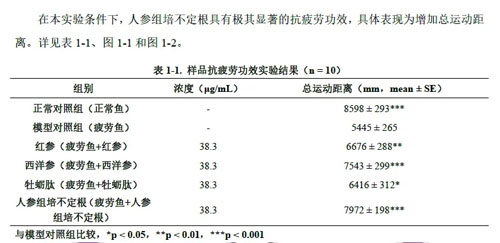 抗疲劳功效方面,人参组培不定根表现出色,全面超越西洋参、红参和牡蛎肽。其抗疲劳效果是西洋参的1.06倍,是红参的1.19倍,是牡蛎肽的1.24倍。