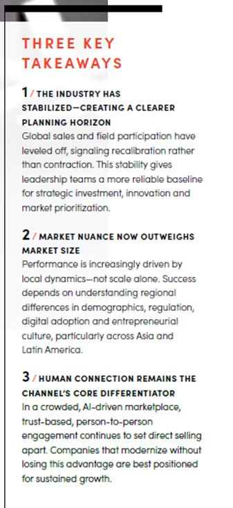 全球范围内,2024年的直销更像是暂停,而非停滞期。该赛道吸收了疫情时期的扭曲,经受住了经济冲击,并更加清晰地认识到未来增长所需的条件。