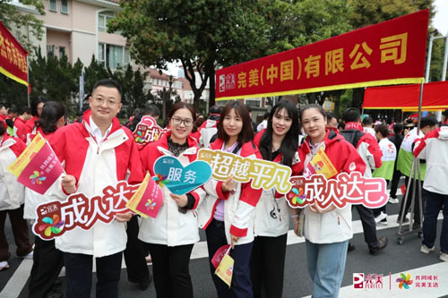 完美公司员工组成的爱心巡游方阵