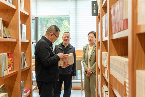 走进绿韵书屋,各类书籍琳琅满目,书香氤氲,沁人心脾。胡国安董事长向调研组一行介绍了书屋的建设情况。致公·绿韵书屋规划面积500余平方米,设置了近100个阅览座位,可容纳藏书50000余册,配置了少儿读物、文学书籍、科学技术、人文历史等各类实用性图书与工具性用书。书屋自建成以来,定期举办主题读书会,持续开展系列读书分享活动,并依托书香校园建设,与乡村学校联合组织特色主题研学与阅读活动,辐射带动乡村全民阅读,搭建图书分享平台,让书屋成为乡村文化振兴的“充电站”。未来,绿之韵将继续探索更多创新主题的读书学习与文化交流活动,持续焕发乡村书屋活力,为乡村振兴不断注入文化动能。