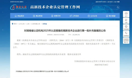 近日,全国高新技术企业认定管理工作领导小组办公室发布《关于对湖南省认定机构2025年认定报备的高新技术企业进行第一批补充备案的公告》,理想华莱旗下湖南华莱顺利通过认定,再次成功入选国家高新技术企业名单,标志着公司在科技创新、技术研发、成果转化与规范发展等方面获得国家层面的权威认可,持续领跑中国黑茶产业科技创新赛道。