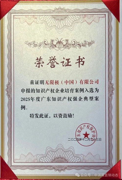 2025年12月,无限极申报的“四位一体知识产权战略体系”项目成功入选为2025年度广东知识产权强企典型案例。这一荣誉不仅是对无限极知识产权保护范式的认可,更彰显了无限极以知识产权赋能高质量发展的标杆示范作用。